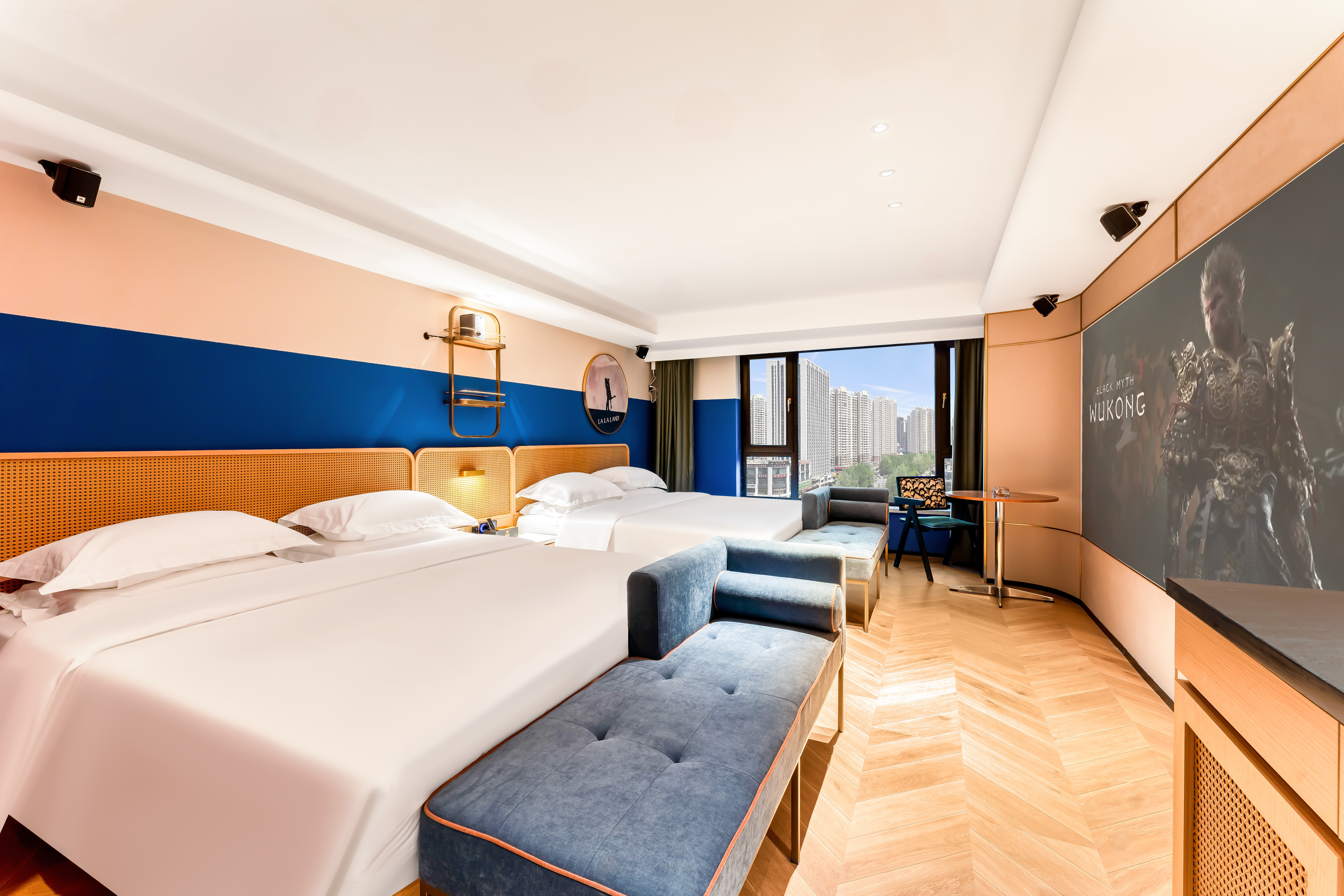 欢趣臻选·家庭双大床房(百寸极米观影+腾讯会员+英国乐富豪音响+乳胶床垫)